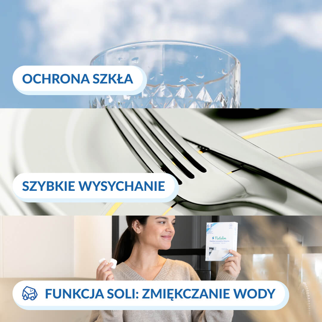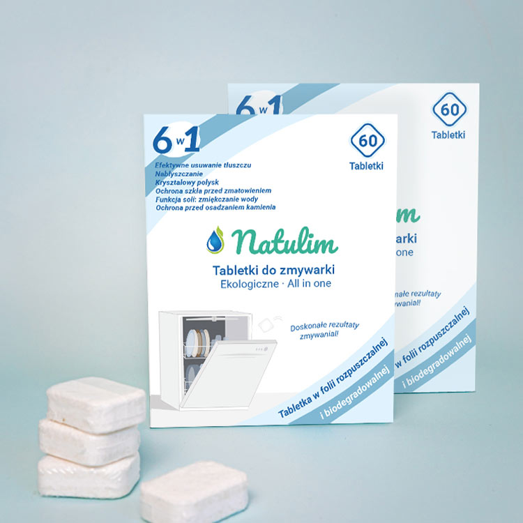 Tabletka do zmywarki zamknięta jest w biodegradowalnej folii, której nie należy wcześniej otwierać. Jest w 100% rozpuszczalna.