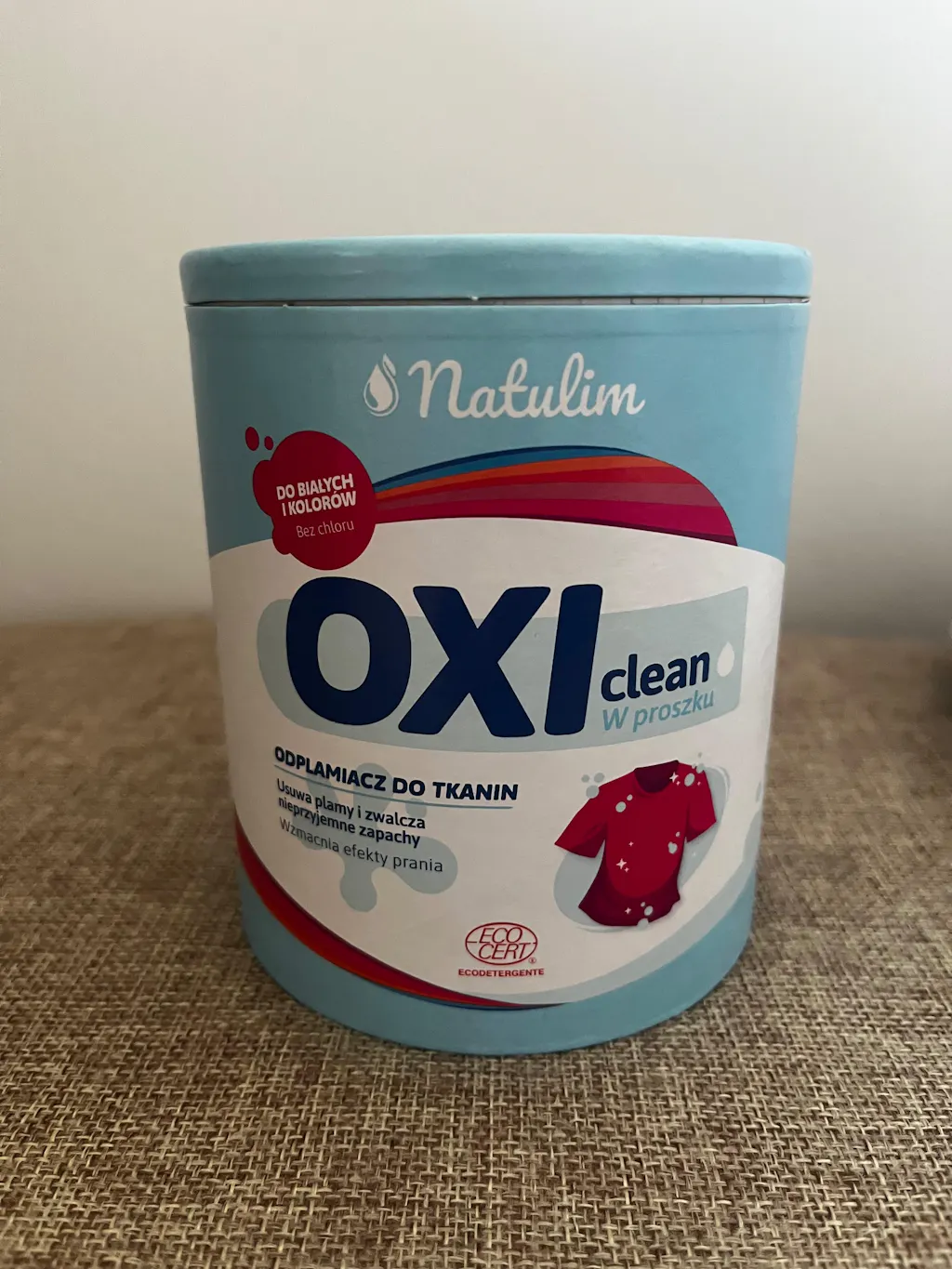 Oxi Clean od Natulim to odplamiacz w proszku do kolorowych tkanin. Ekologiczny z certyfikatem ECOCERT nie zawiera chloru. Do prania ręcznego oraz w pralce. Produkt można używać razem z listkami do prania Natulim.