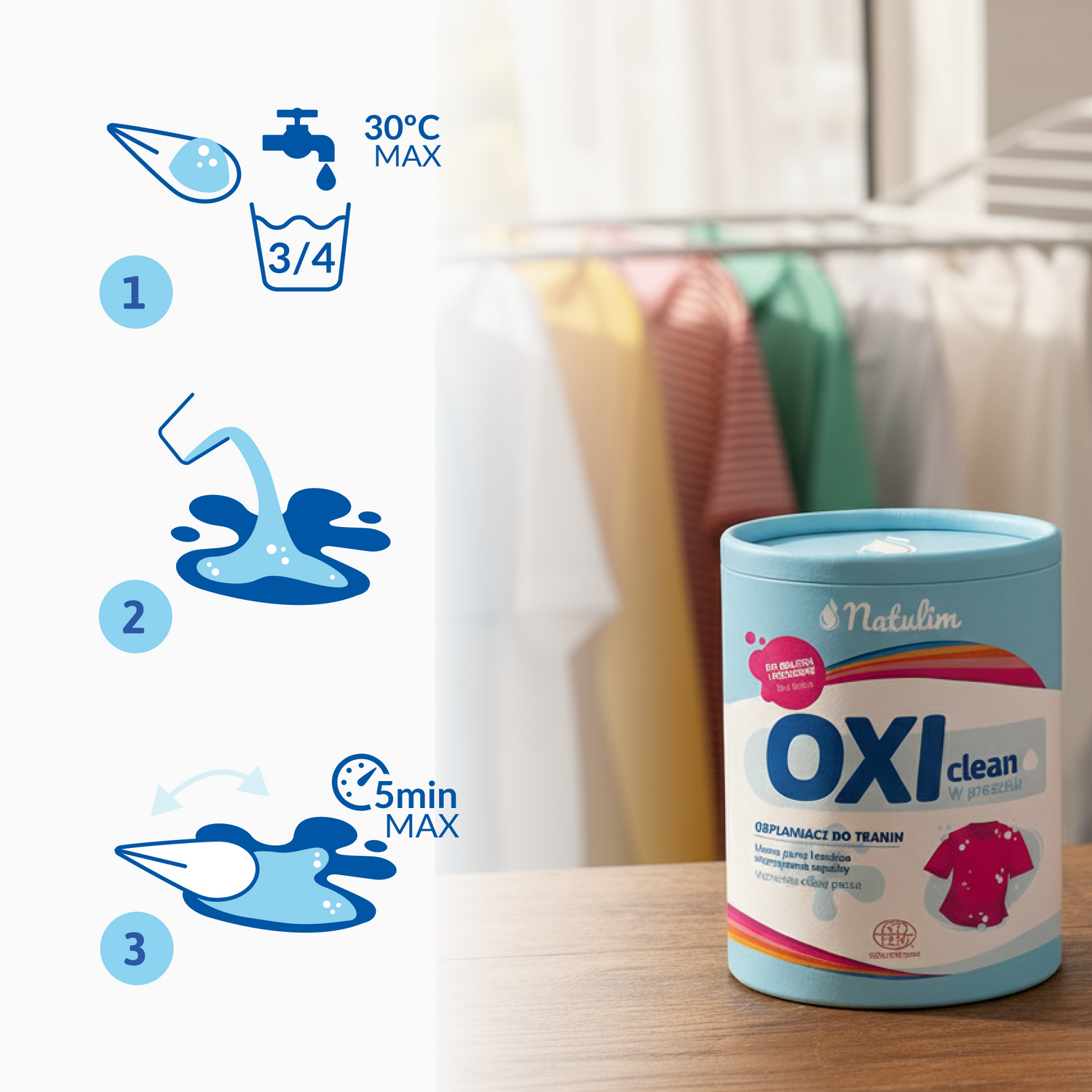 Zapomnij o plamach! Nasz ekologiczny odplamiacz w proszku do kolorów skutecznie usuwa zabrudzenia, wzmacniając działanie detergentu. Łatwy w użyciu, przyjazny dla środowiska i gwarantujący czystość bez wysiłku!