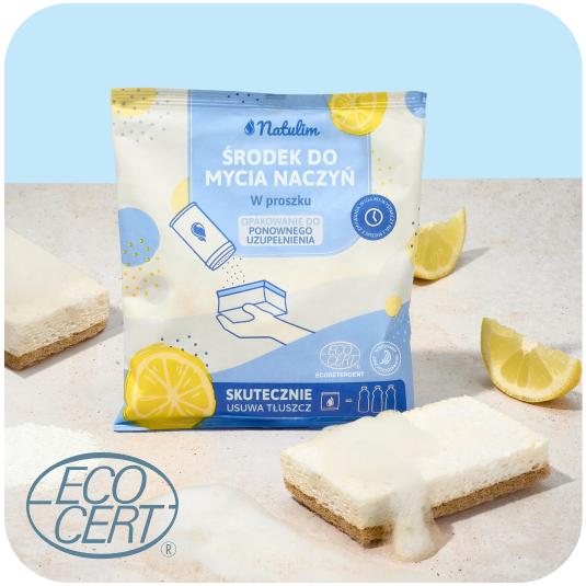 To w pełni ekologiczny proszek do mycia naczyń, posiadający certyfikat ECOCERT, który potwierdza jego naturalne pochodzenie i bezpieczeństwo dla środowiska. Skutecznie czyści, a przy tym jest łagodny dla skóry, co czyni go idealnym wyborem dla osób dbających o planetę i zdrowie.